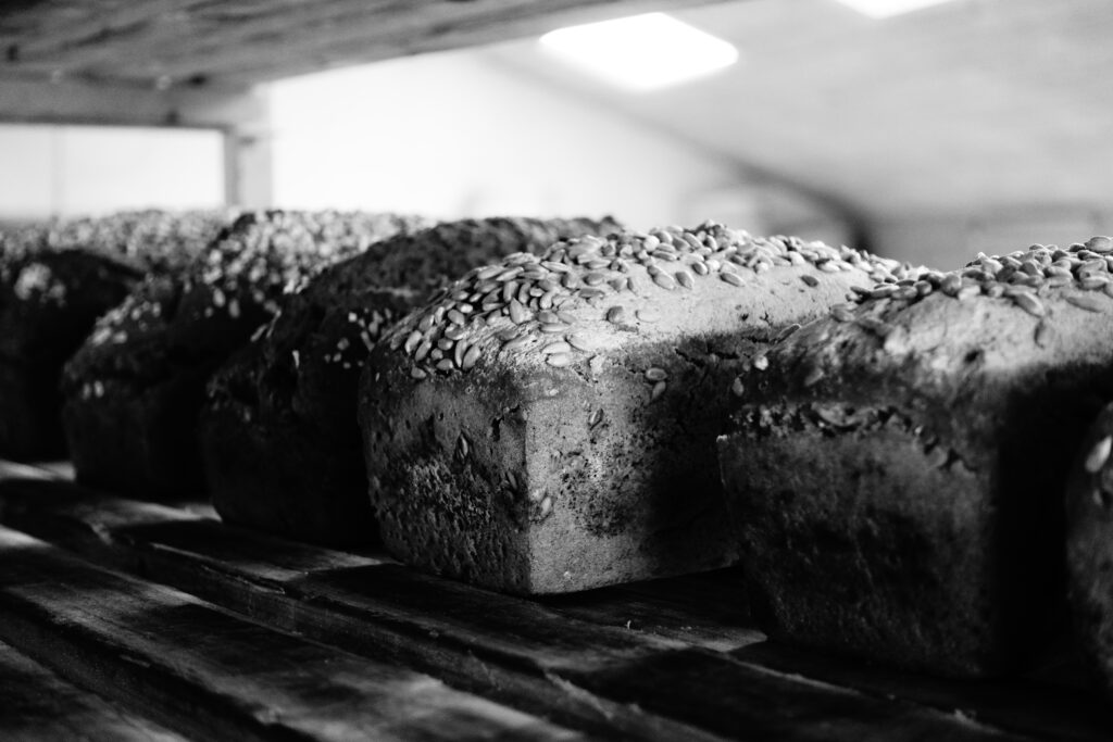 Wir backen mit Emmer, Einkorn, Dinkel, Roggen, Weizen, Hafer und Gerste. Wallnüsse und Ölsaaten wie Sonnenblumen, Lein, Mohn, Sesam und Kürbis wollen wir perspektivisch auch aus der Region beziehen. Aktuell bestellen wir bei Bauck Mühle. Als Triebmittel hilft uns Sauerteig. Sauerteigbrote sind durch die Fermentation besser verdaulich und enthalten prä- und probiotische Bakterien. Sie sind aromatisch intensiver und Mineralstoffen wie Magnesium und Zink sind leichter aufnahmefähig.